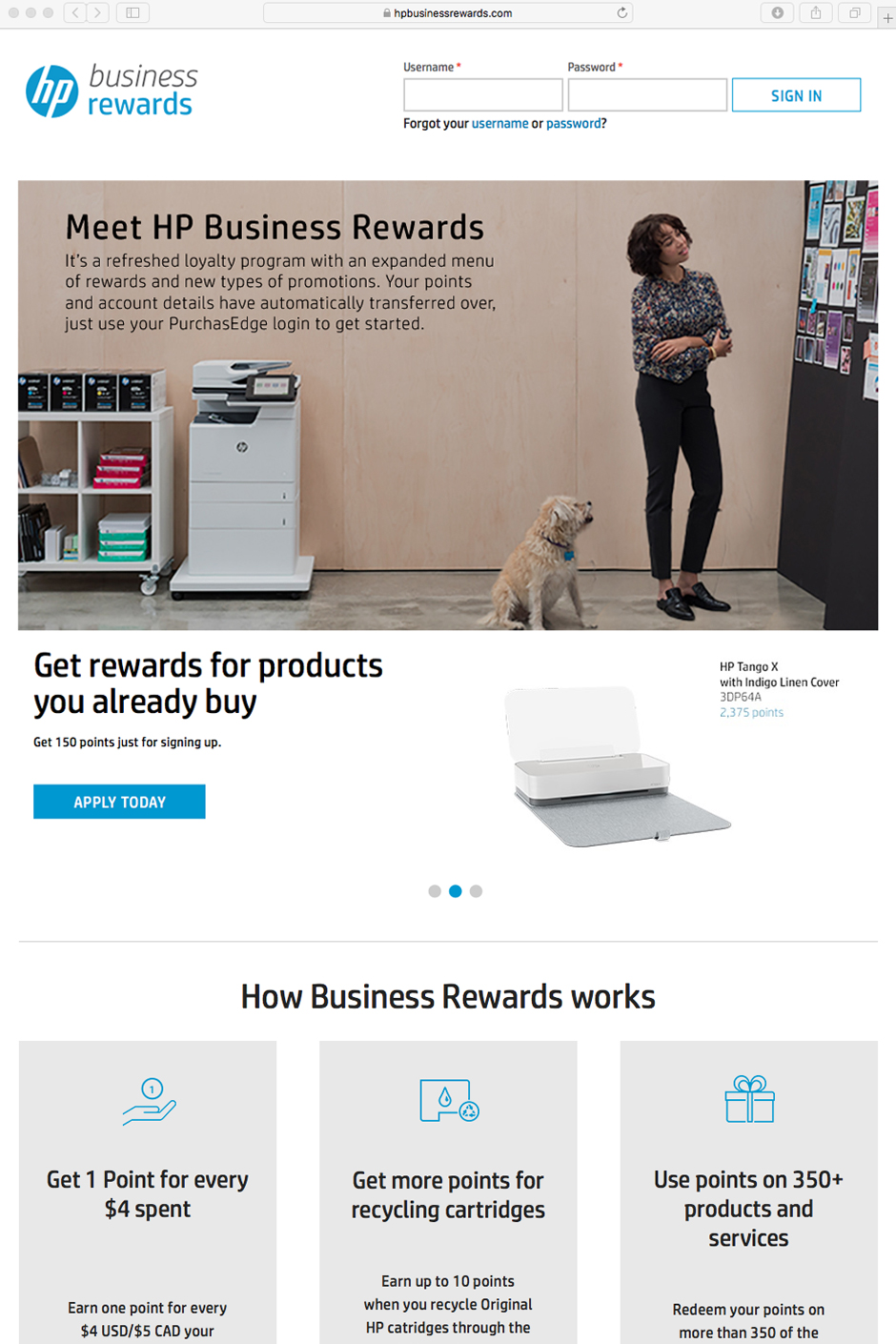 Members earn points for buying Genuine HP supplies that they can redeem online for new HP products—including printers, scanners, paper and more.
